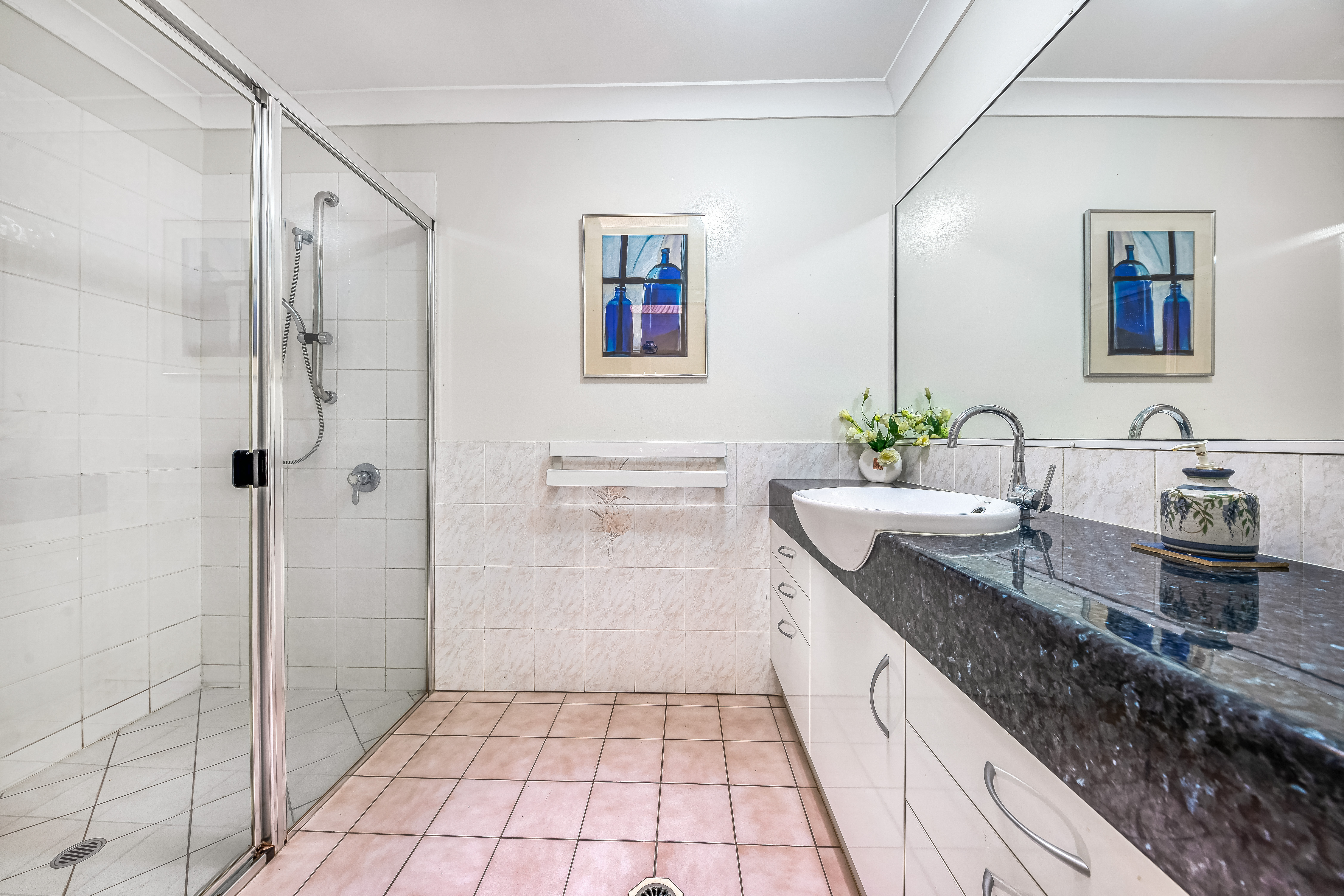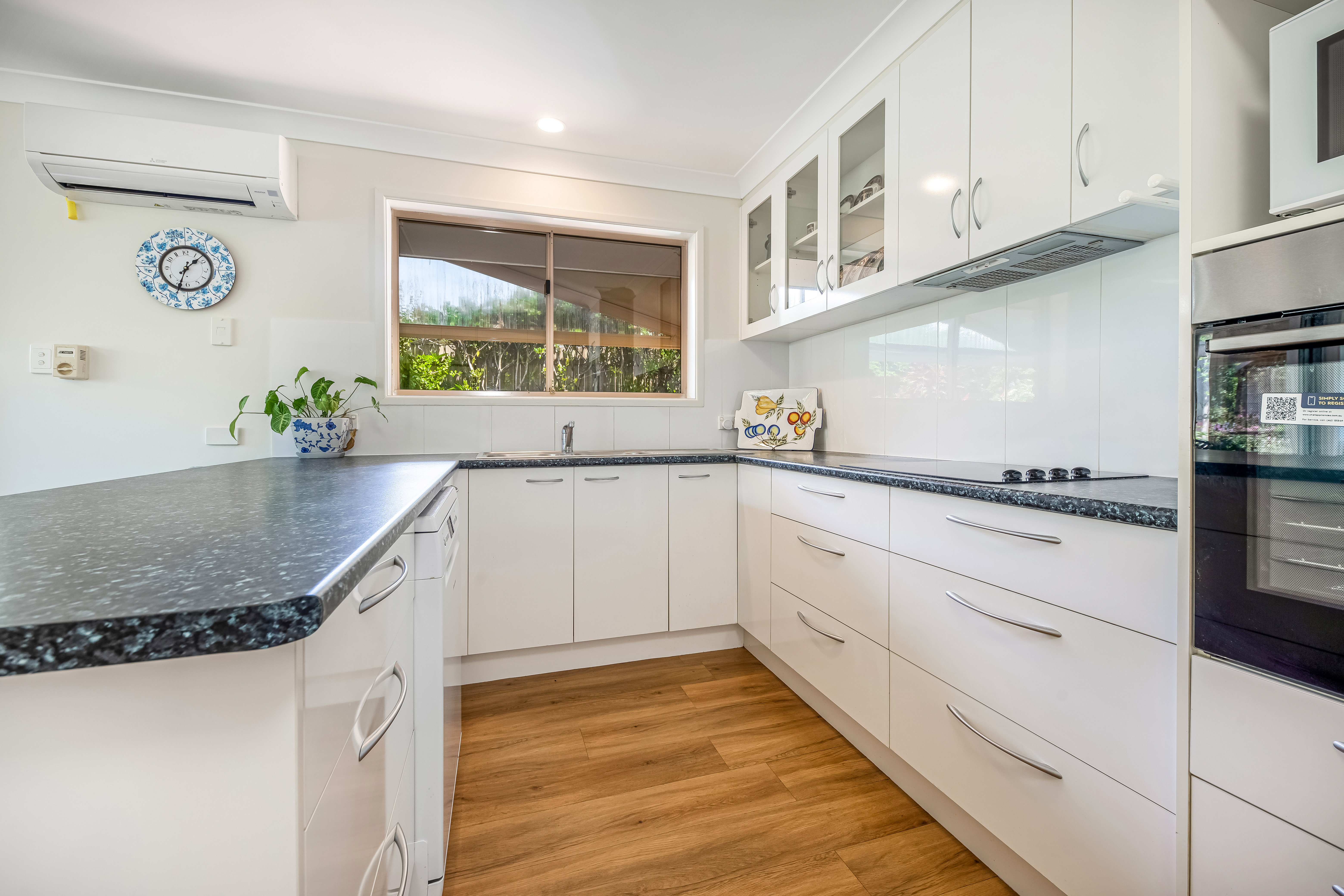 The kitchen offers practicality and convenience with impressive storage, well-maintained appliances, and an under-bench dishwasher.