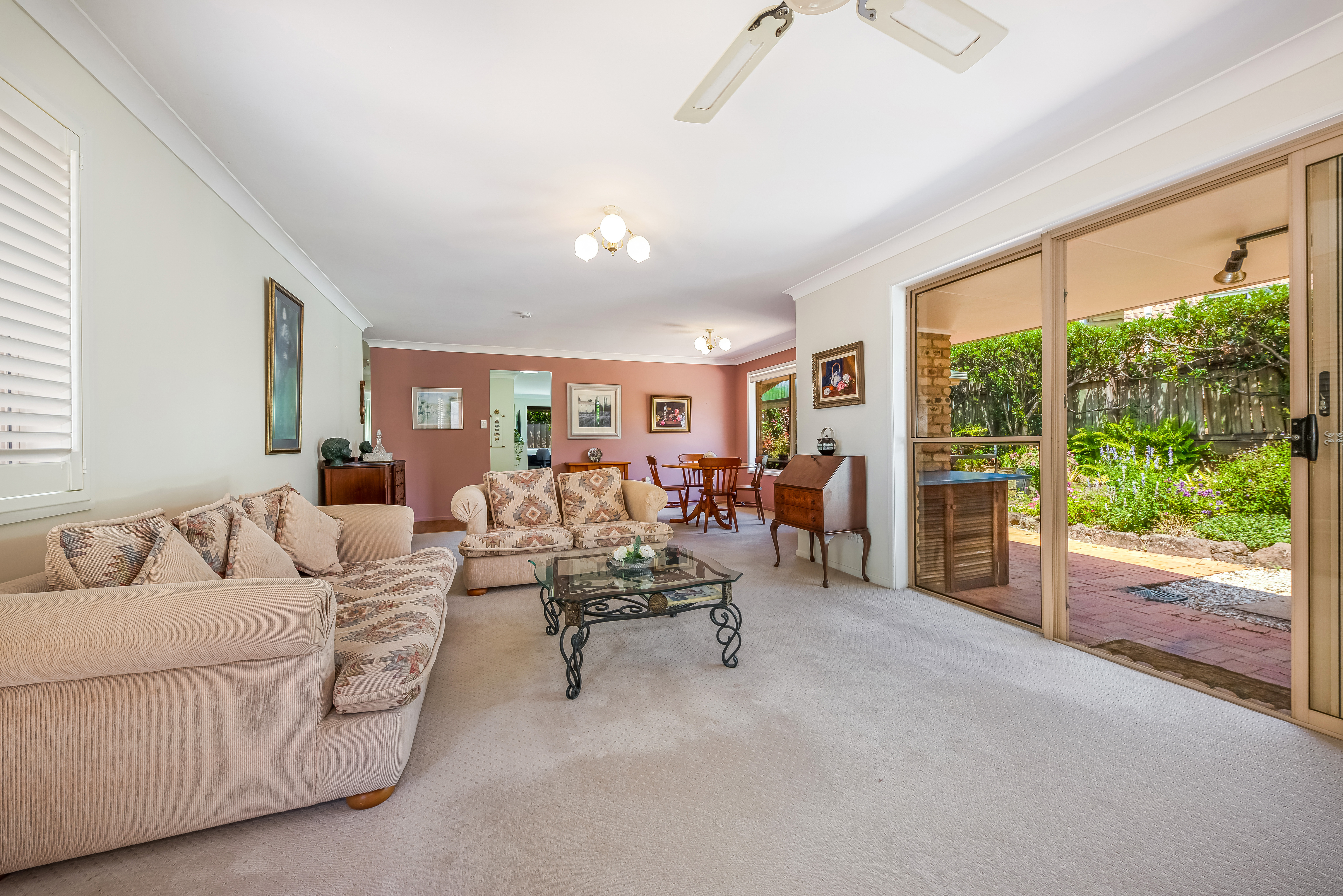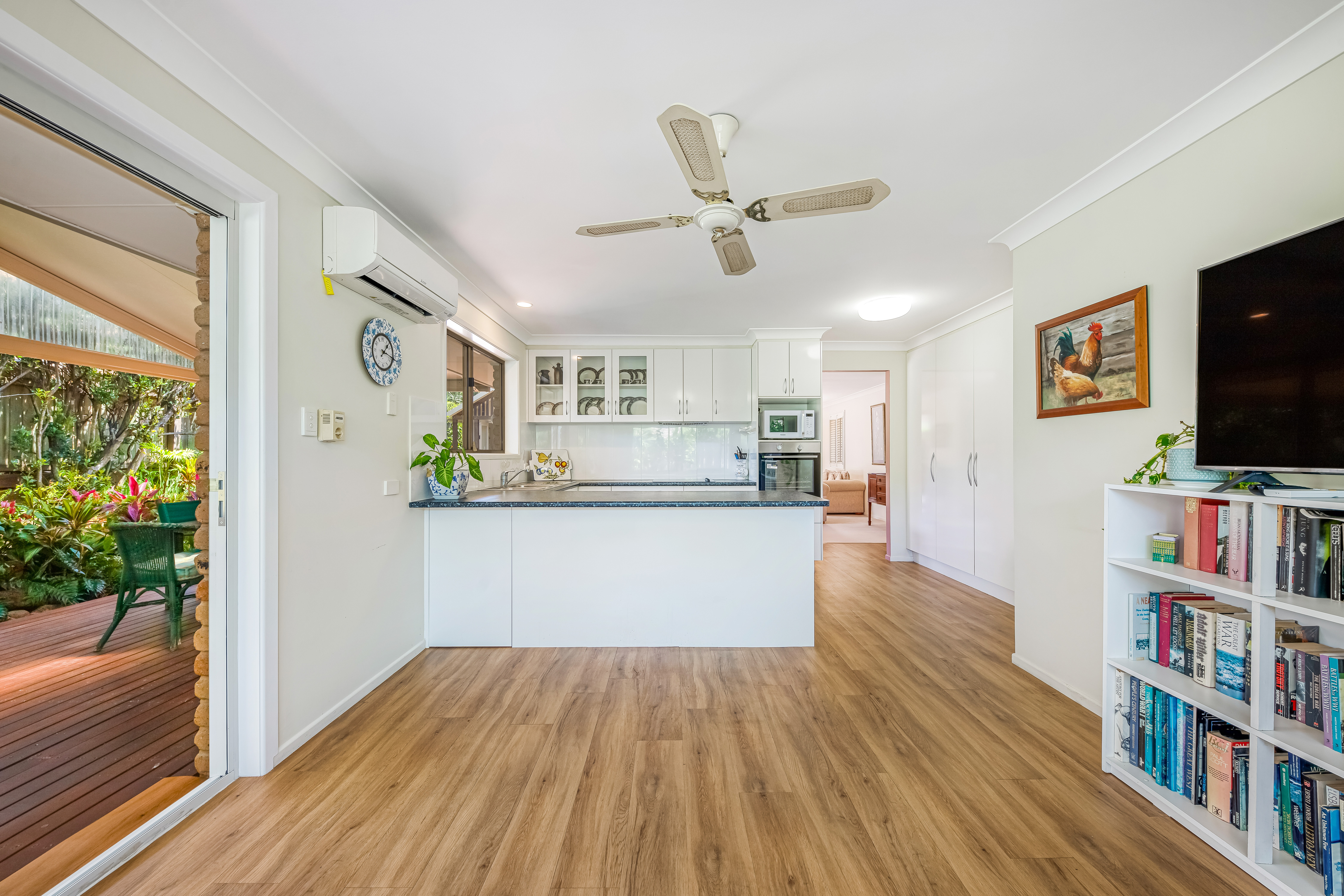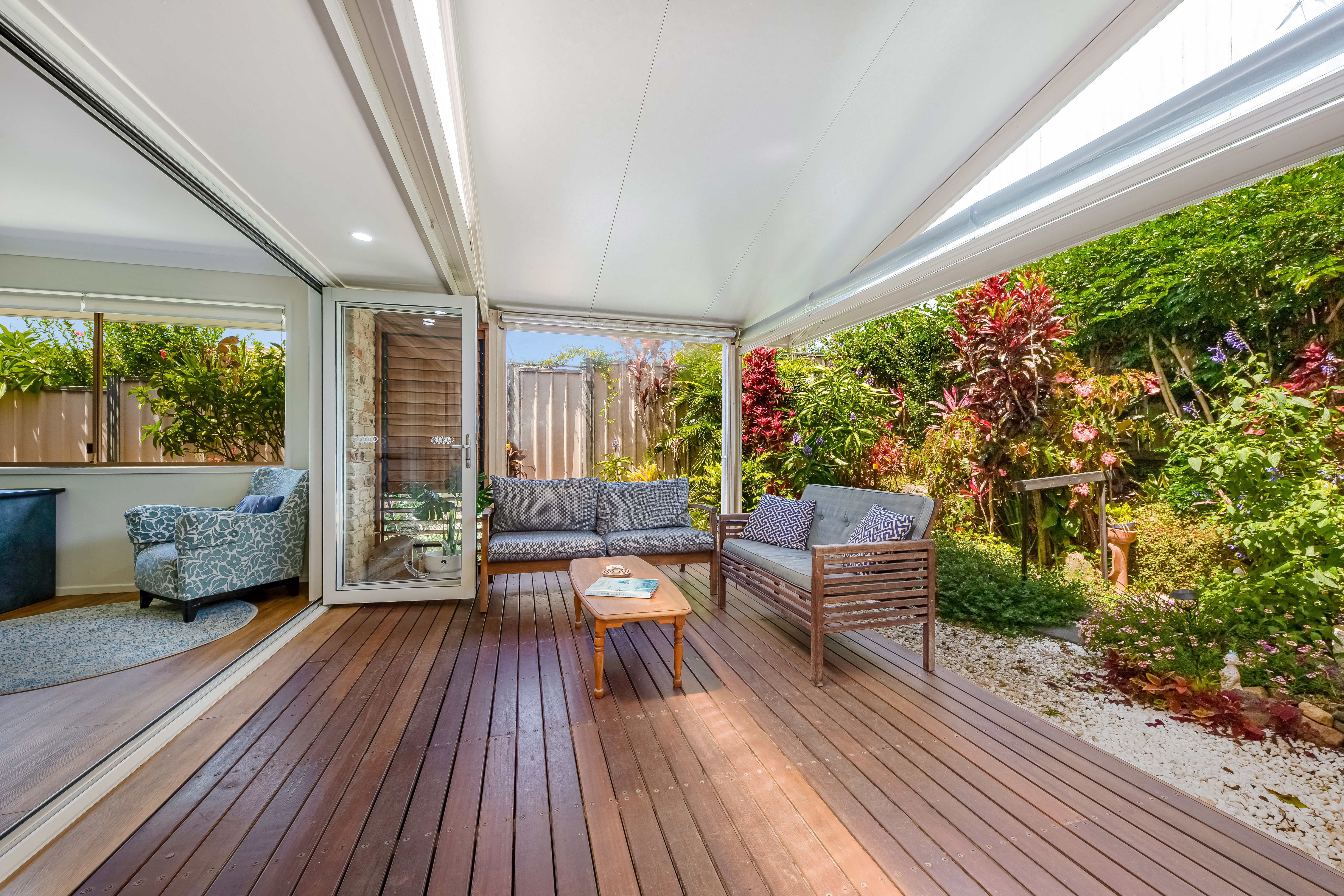 Entering the home, you will be greeted by a spacious, light-filled, airconditioned lounge room with sliding door access to colourful gardens.