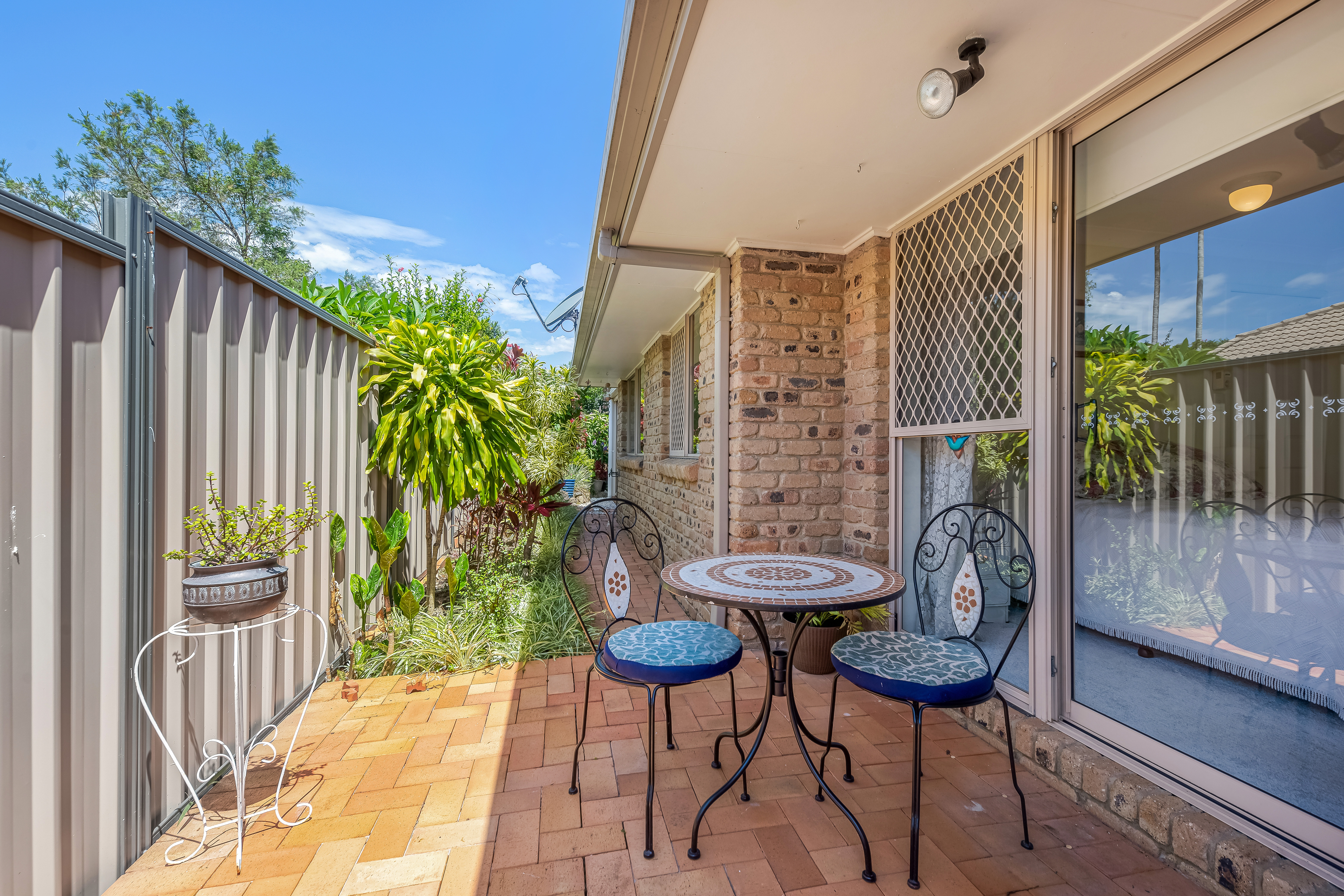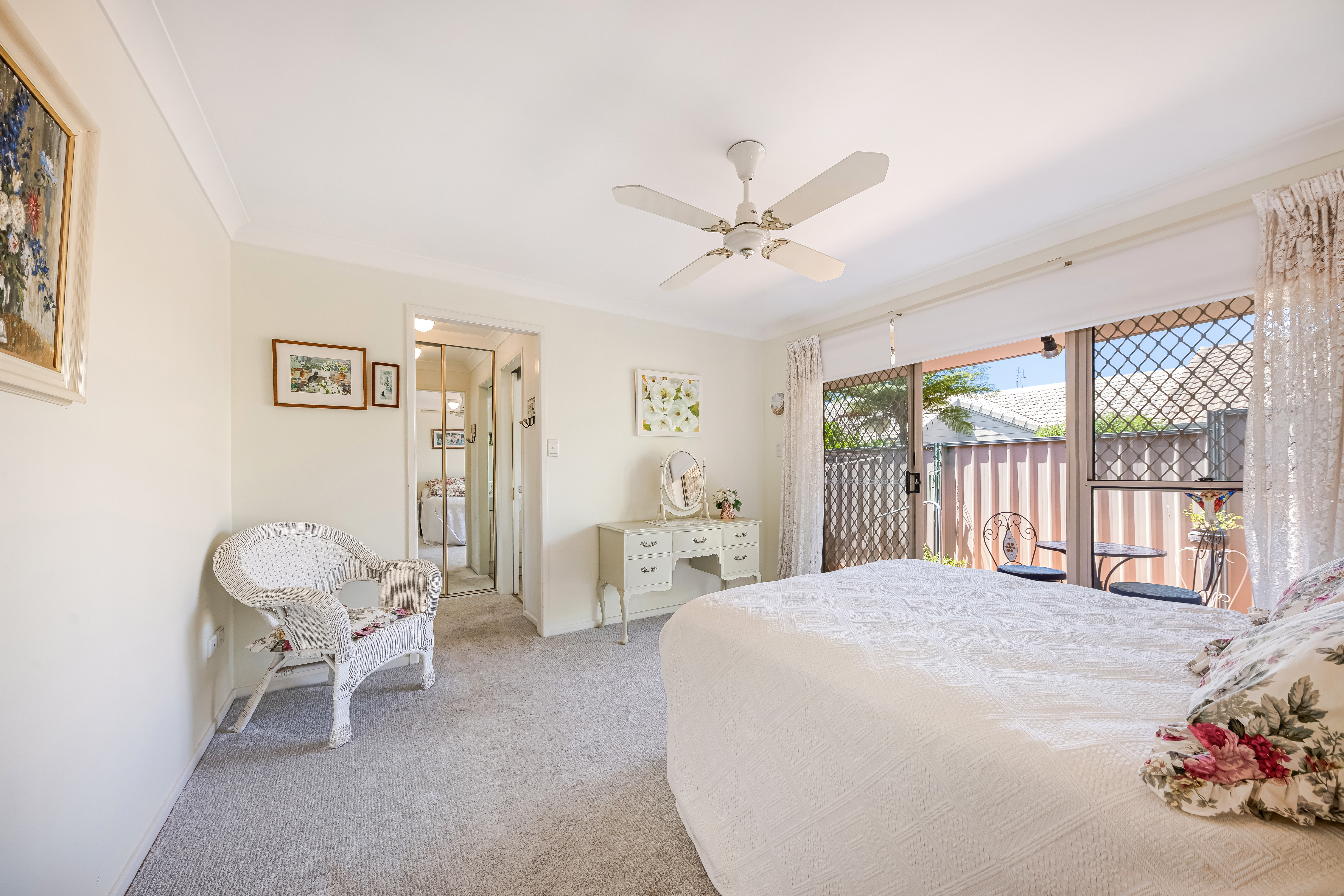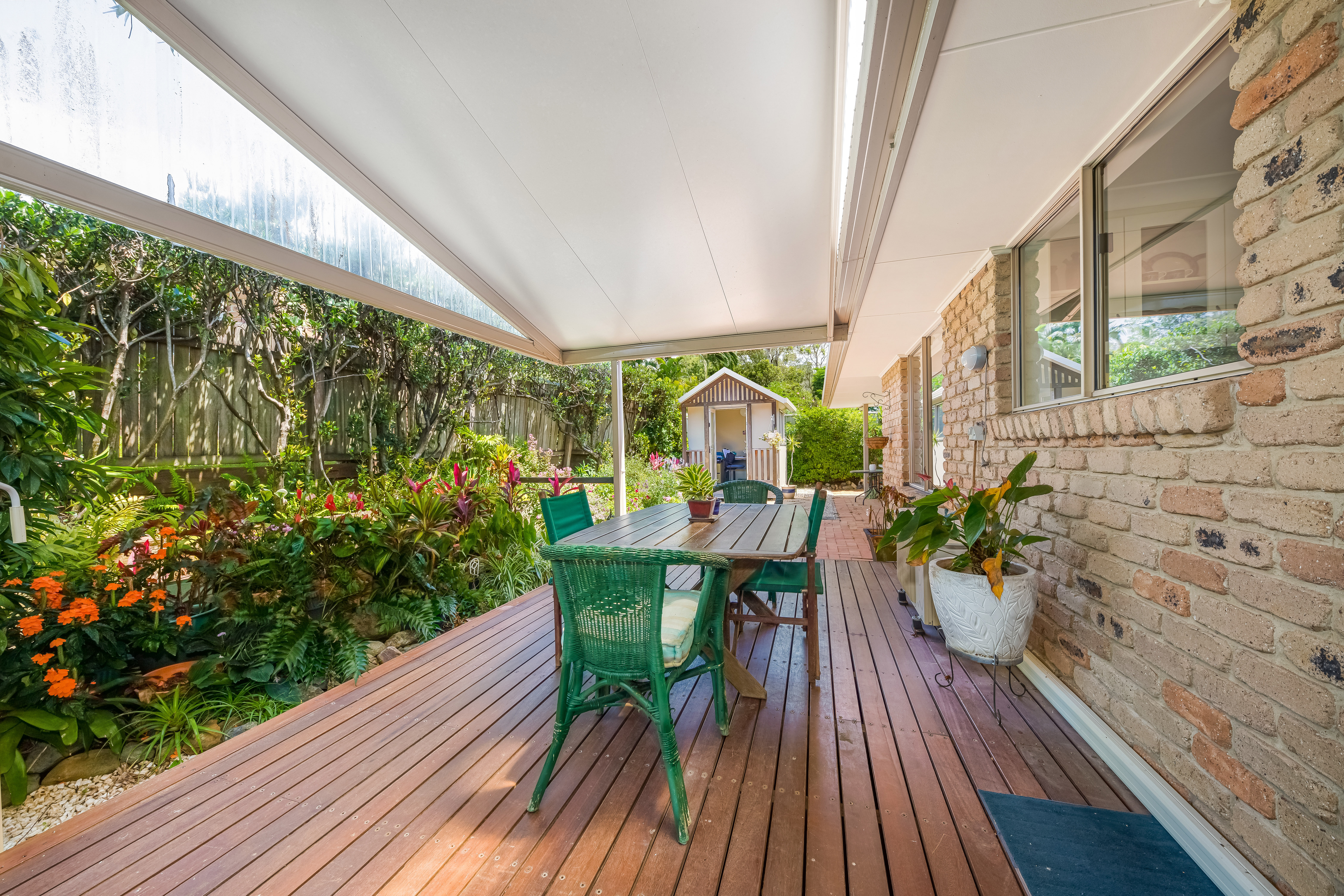 Entering the home, you will be greeted by a spacious, light-filled, airconditioned lounge room with sliding door access to colourful gardens.
