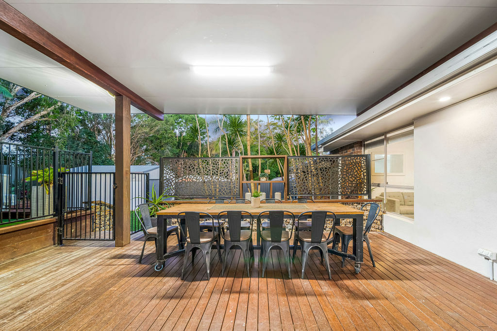 The heart of the home boasts an open-plan living and dining area, creating a welcoming space for family gatherings and entertaining. Seamless indoor-outdoor flow beckons you to the expansive outdoor entertaining deck, where countless memories will be made.