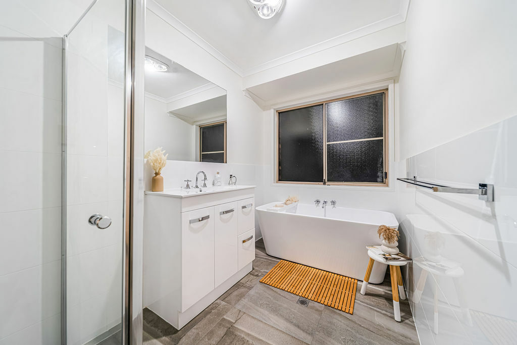The modern kitchen is a culinary enthusiast's dream, offering ample storage, a 900mm gas/electric oven, and a gas cooktop. Recent renovations have brought new life to the bathroom, ensuite, toilet, and laundry, ensuring a contemporary touch.