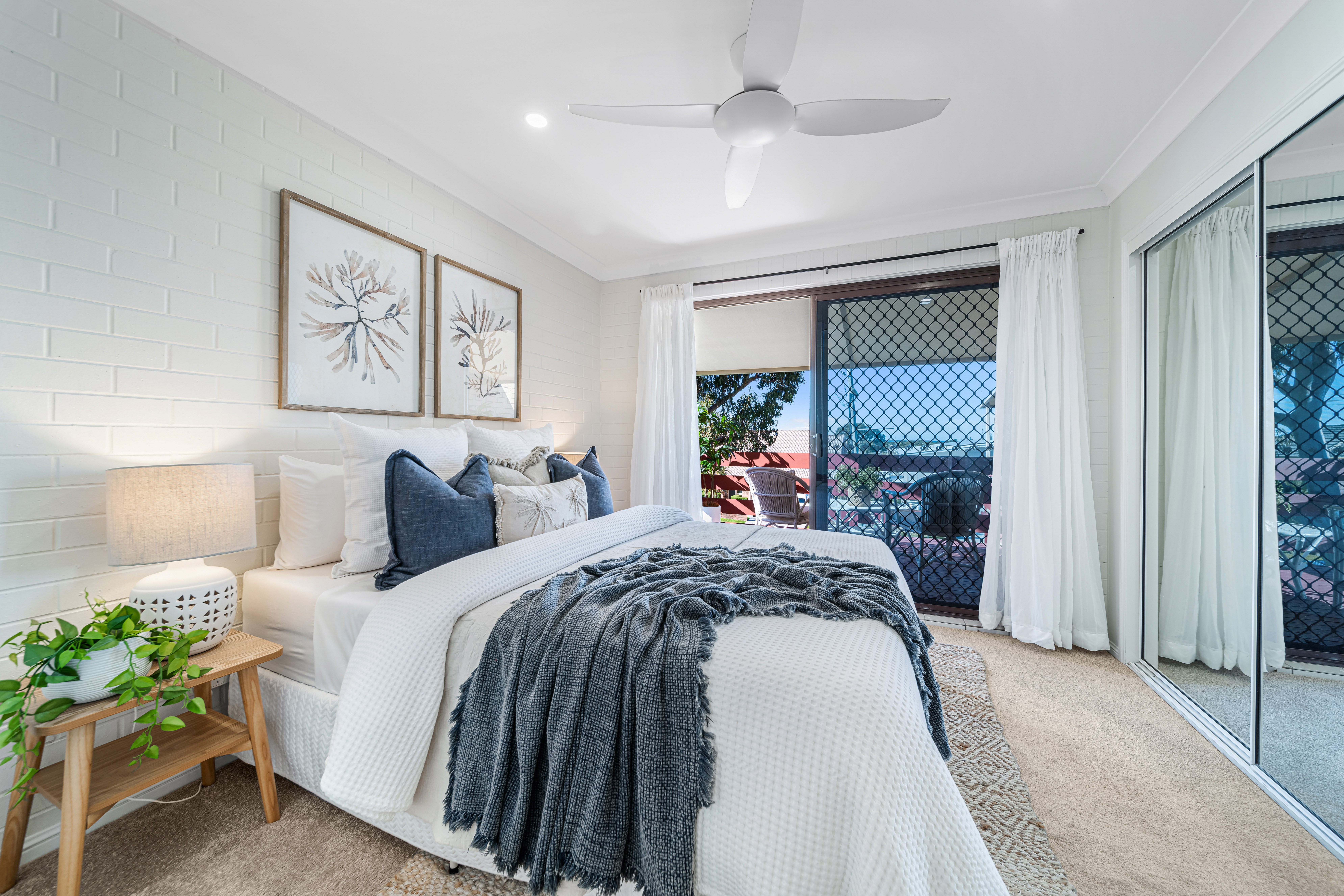 Featuring two generously sized bedrooms, the master boasts its own private balcony with water views out to the horizon, perfect for enjoying your morning coffee in the open breeze. Accompanying these bedrooms is the main bathroom, which features a shower, a bath, and a separate toilet.
