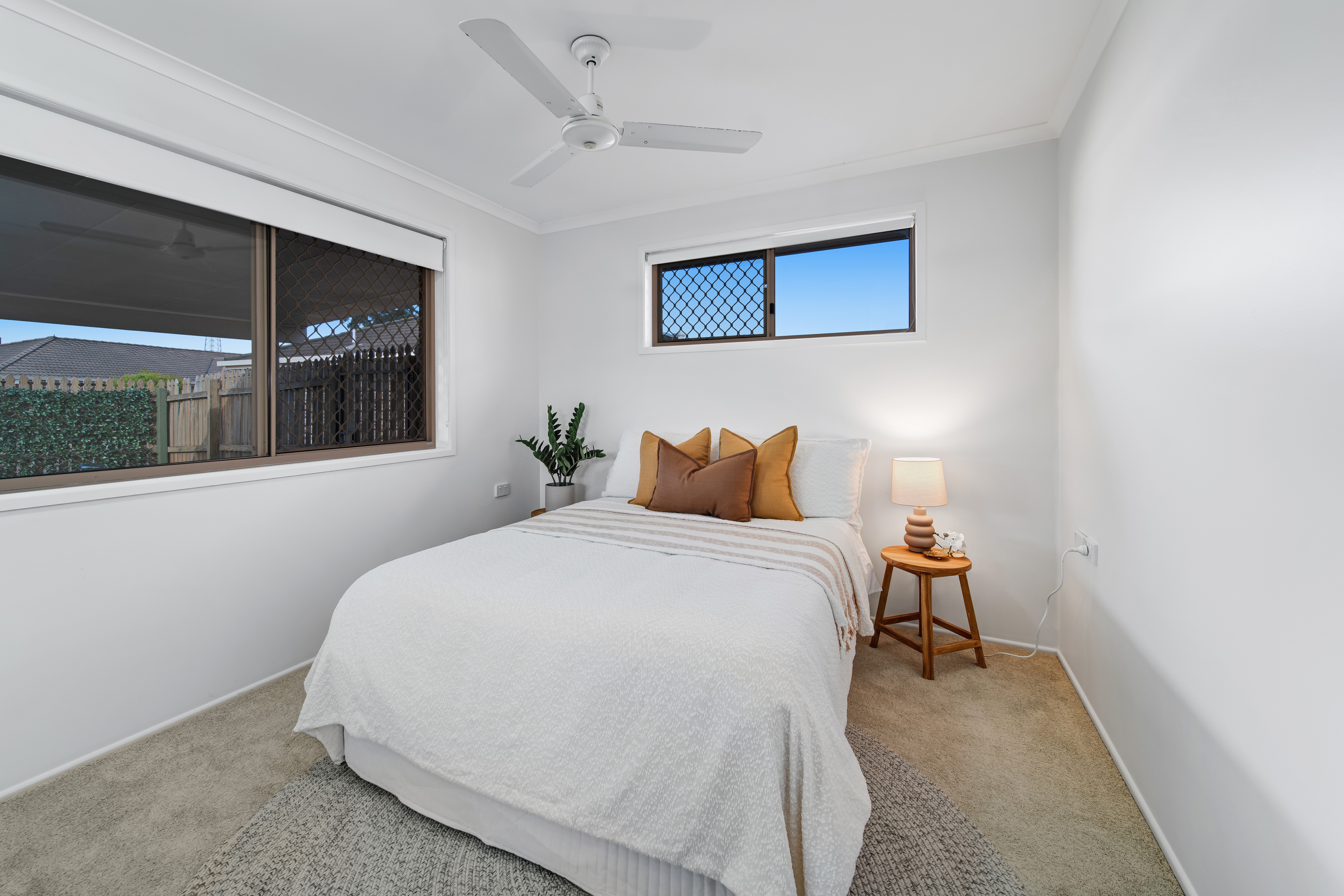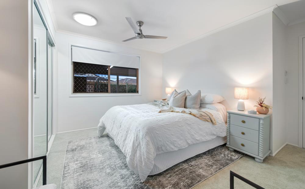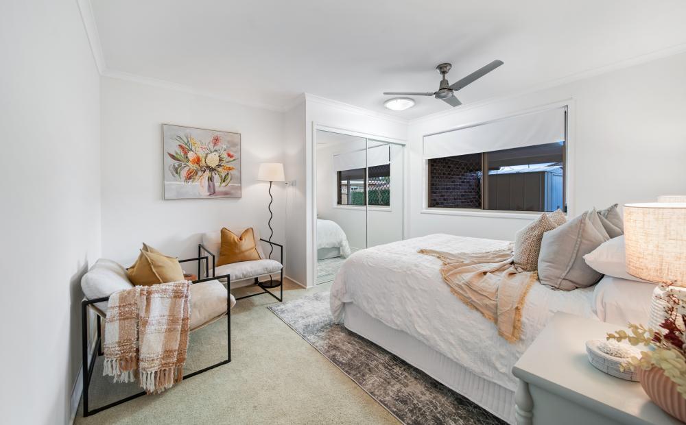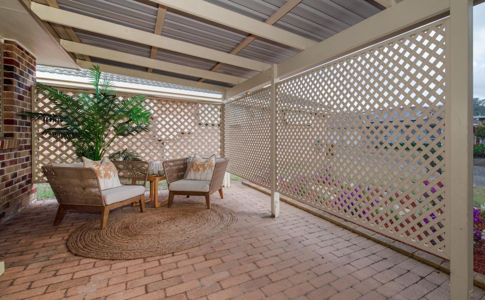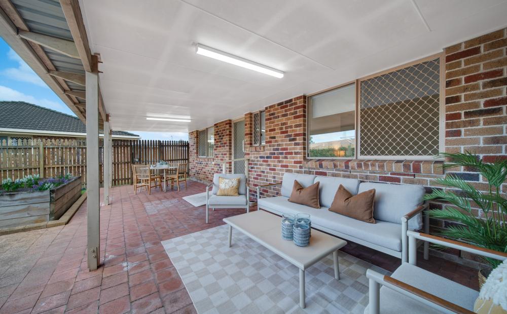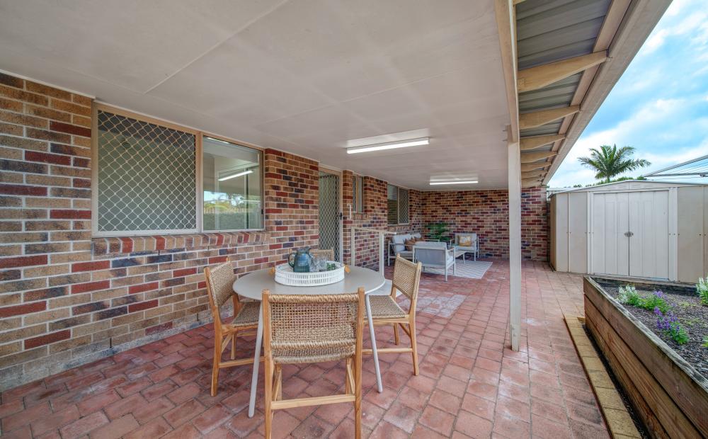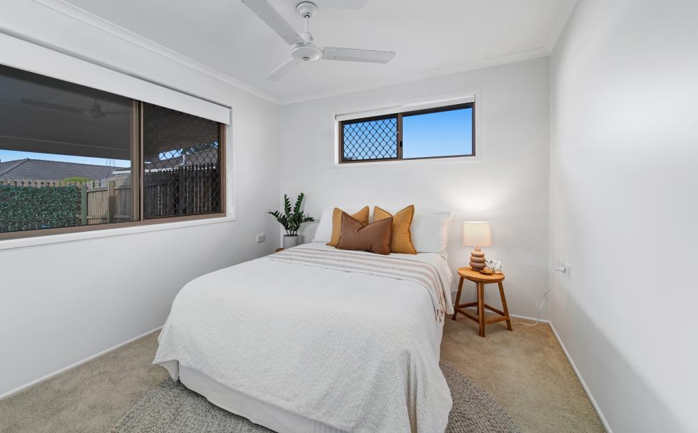 Inside, the living and dining areas are air-conditioned, while ceiling fans in the bedrooms keep the spaces comfortable year-round. Step outside to your private rear alfresco, ideal for entertaining or relaxing, and a front privacy-screened alfresco provides a tranquil spot to enjoy your morning coffee. The low-maintenance, freshly manicured gardens add to the charm and convenience of the home.