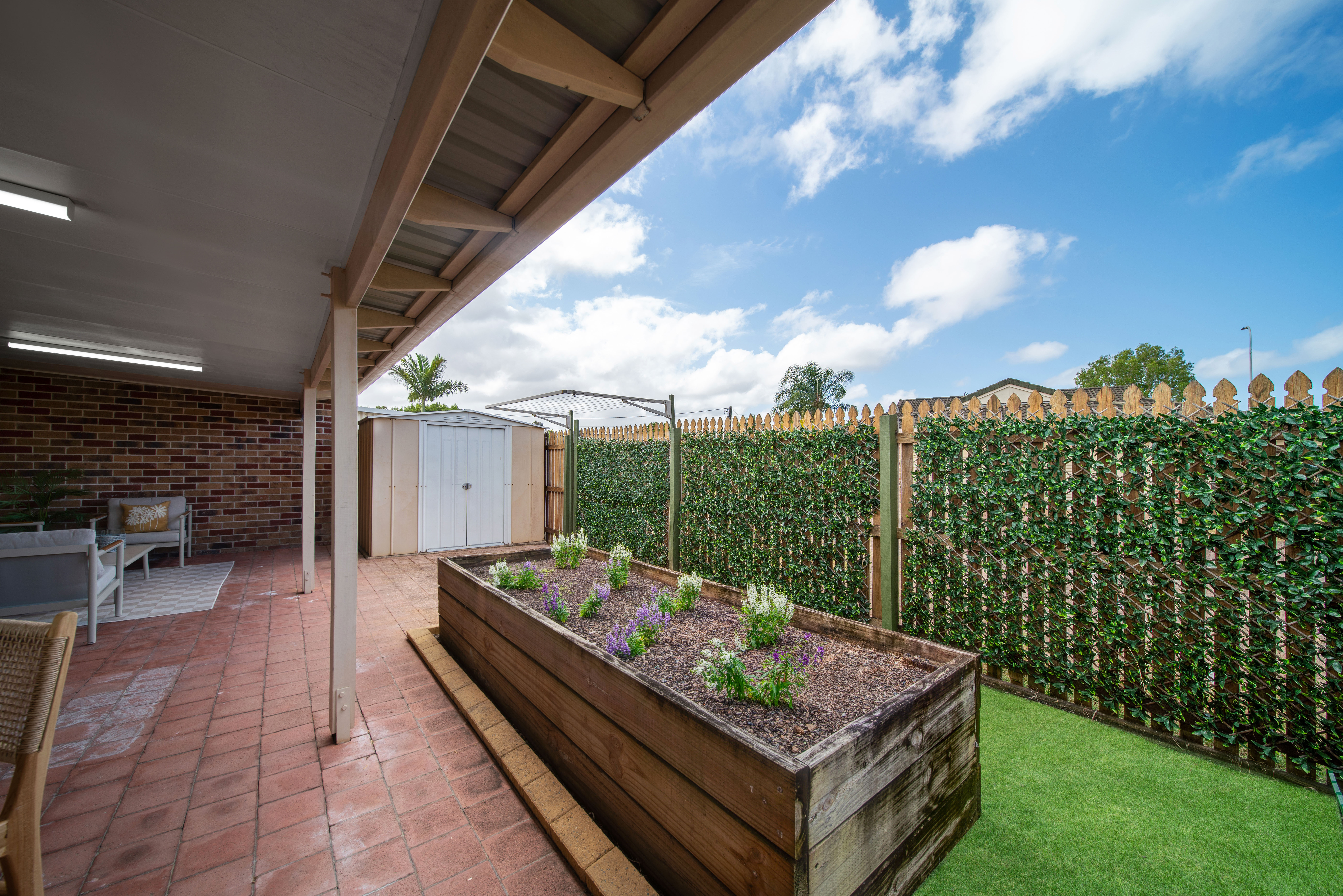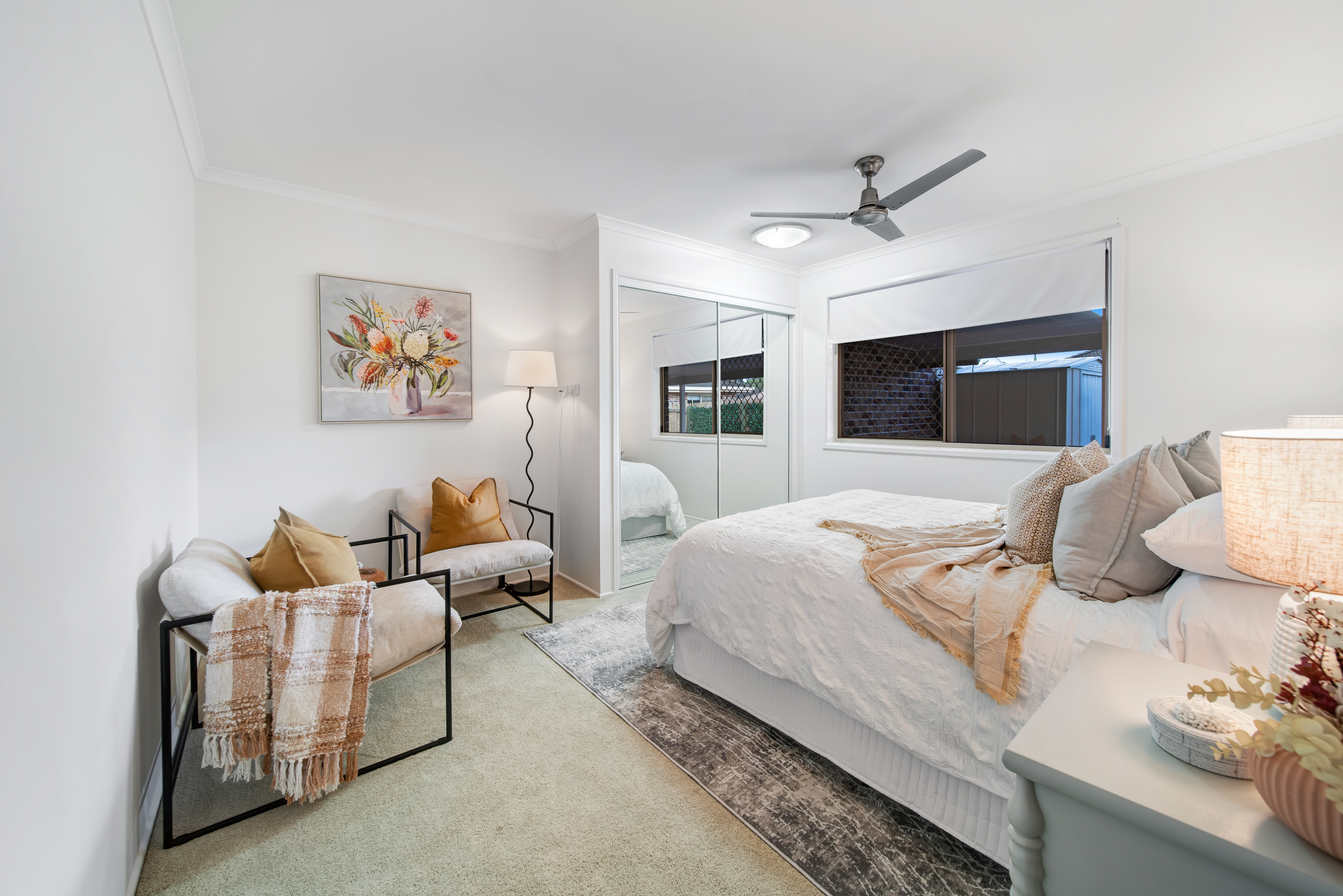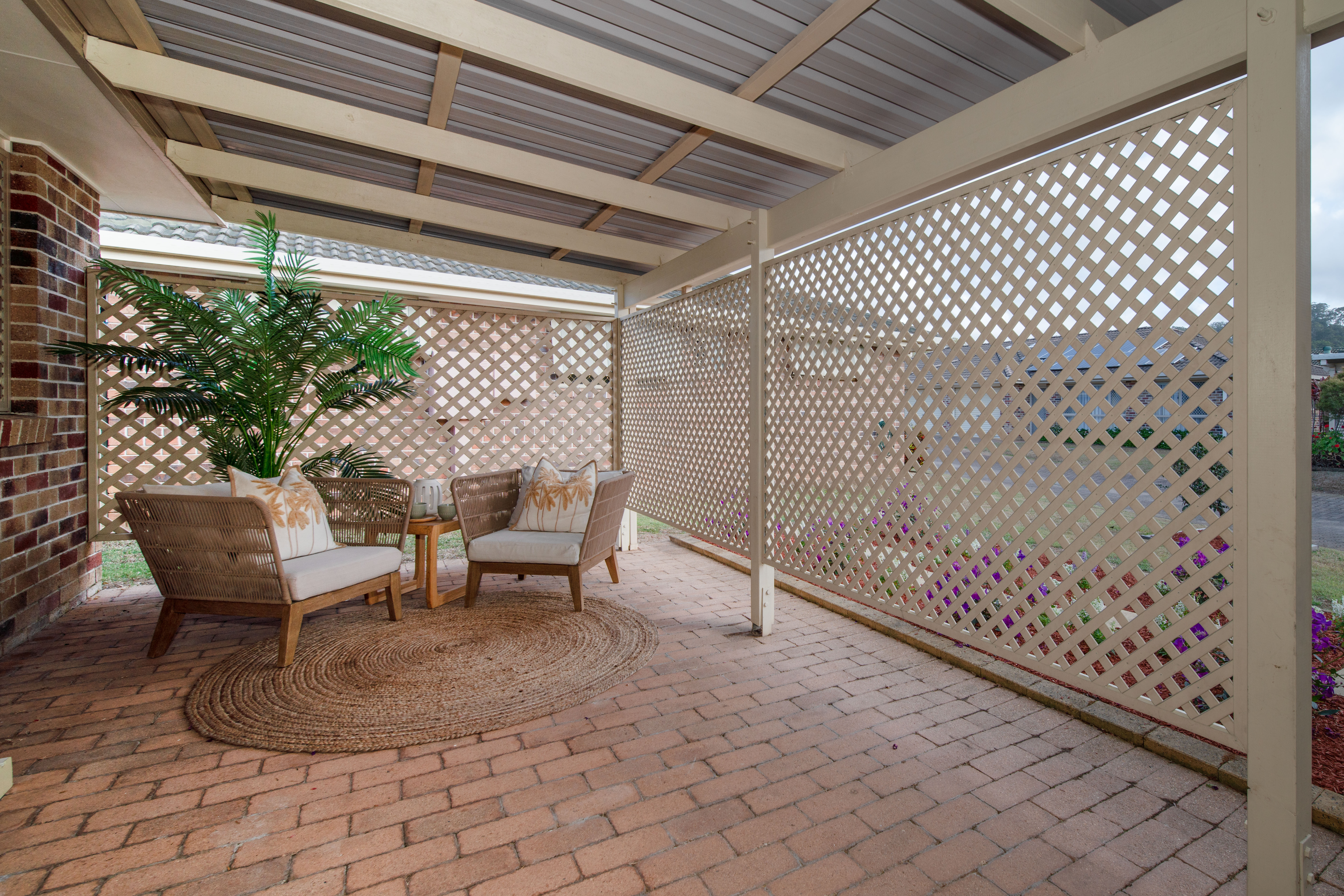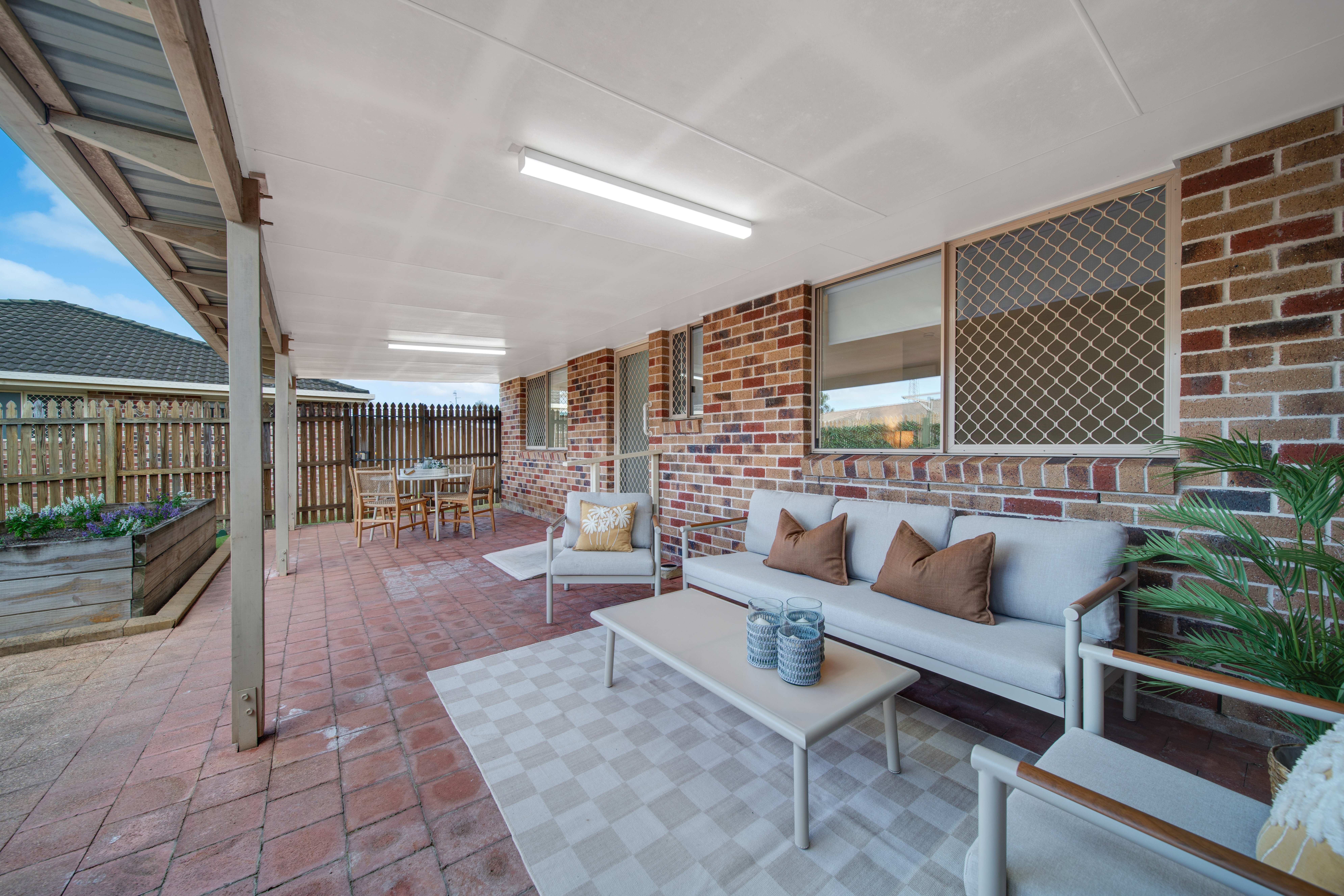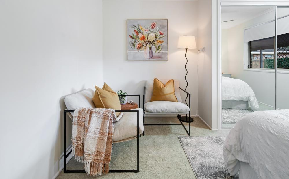 Inside, the living and dining areas are air-conditioned, while ceiling fans in the bedrooms keep the spaces comfortable year-round. Step outside to your private rear alfresco, ideal for entertaining or relaxing, and a front privacy-screened alfresco provides a tranquil spot to enjoy your morning coffee. The low-maintenance, freshly manicured gardens add to the charm and convenience of the home.