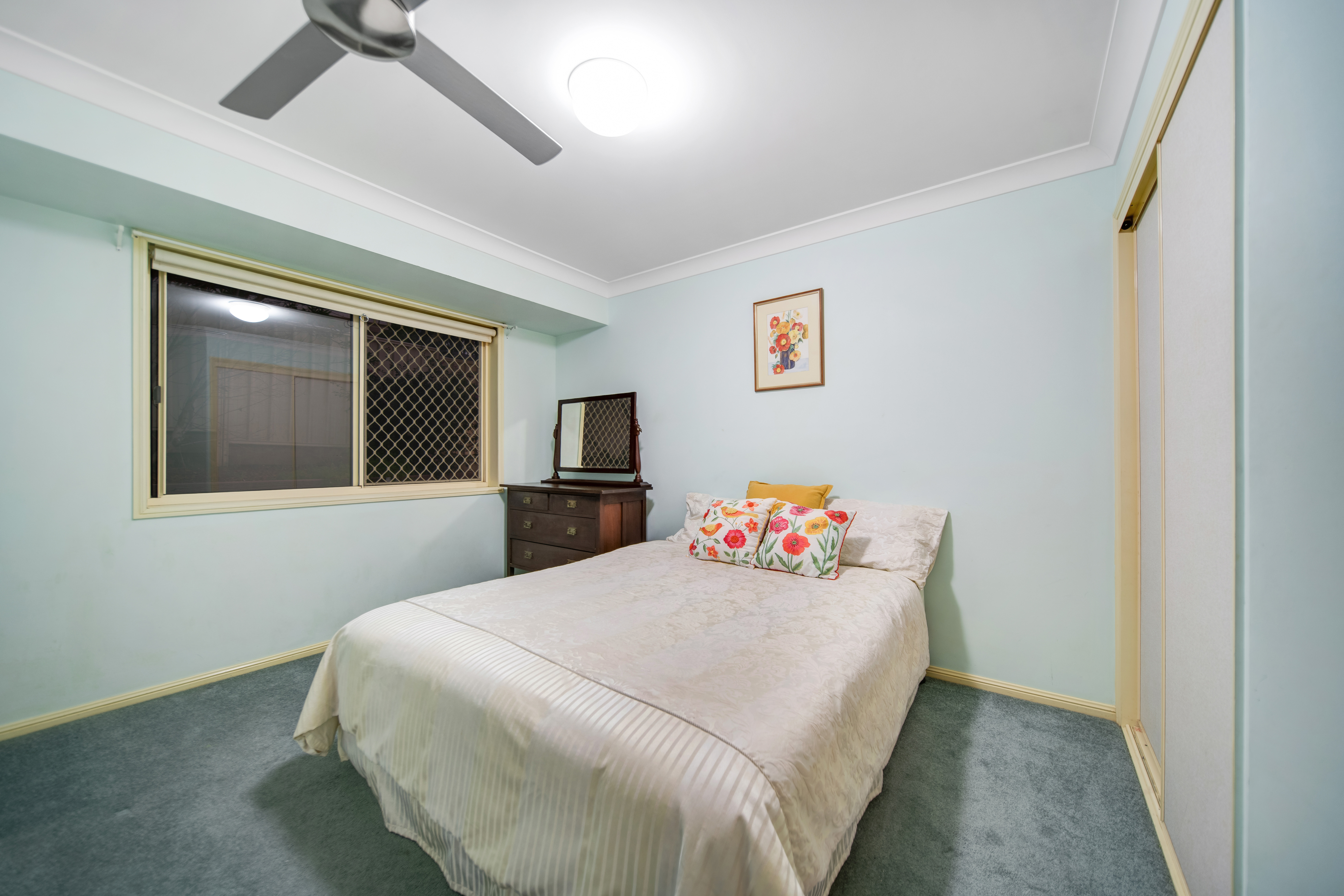 The home comprises four generously sized bedrooms, including a private master retreat with ensuite, while the remaining bedrooms are serviced by a central family bathroom and thoughtfully arranged to provide comfort, privacy and flexibility. At the heart of the home, the kitchen is spacious and functional, offering ample bench space and storage while overlooking the main living areas, keeping daily life and connection front of mind. Air-conditioning to the family room, ceiling fans throughout and excellent natural airflow ensure year-round comfort.