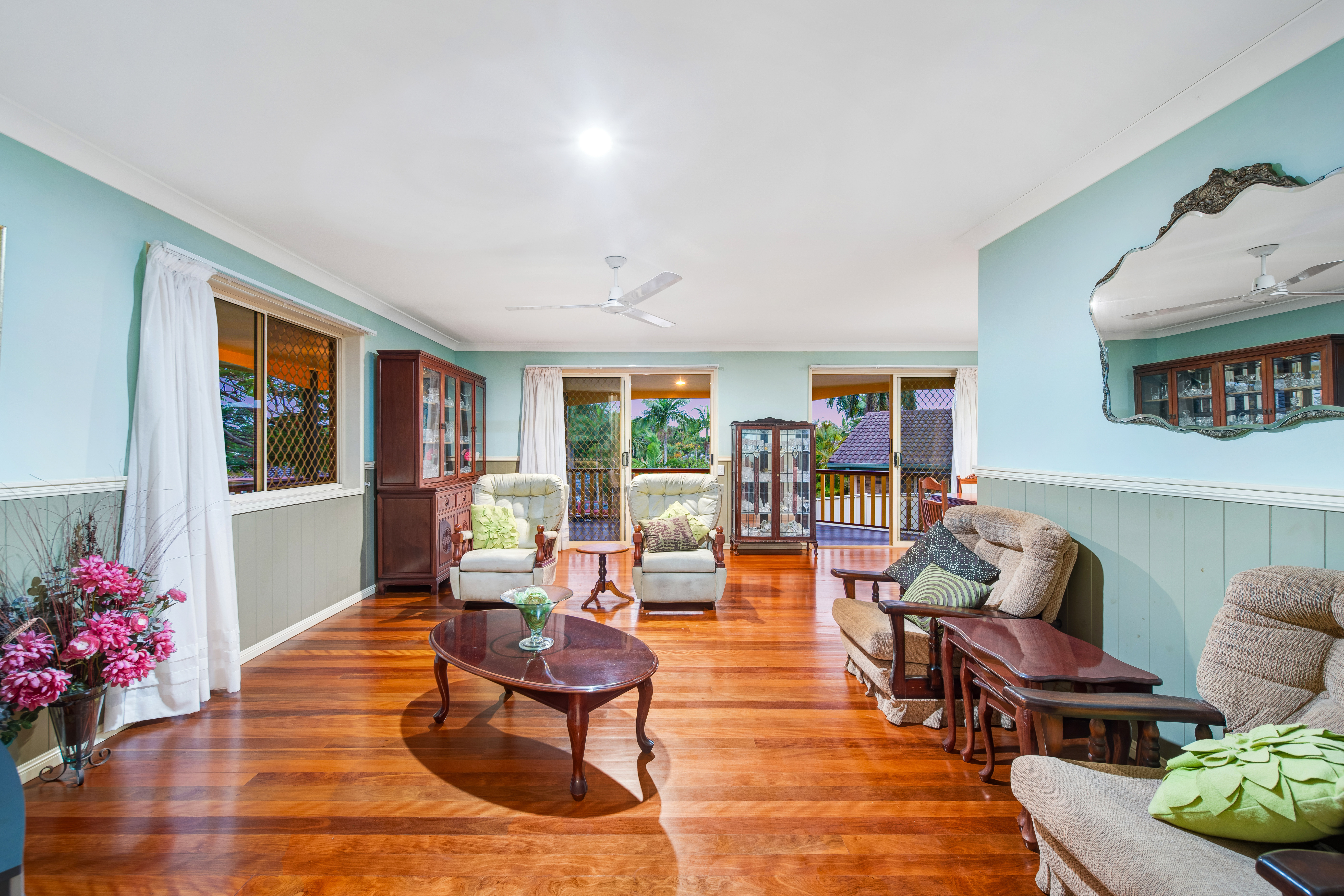 From the moment you arrive, the home’s elevated position and established gardens create an immediate feeling of warmth and welcome. Inside, timber flooring, soft natural light and a well-considered layout combine to form an environment that is both inviting and practical — a residence that has clearly been cared for and enjoyed over many years.